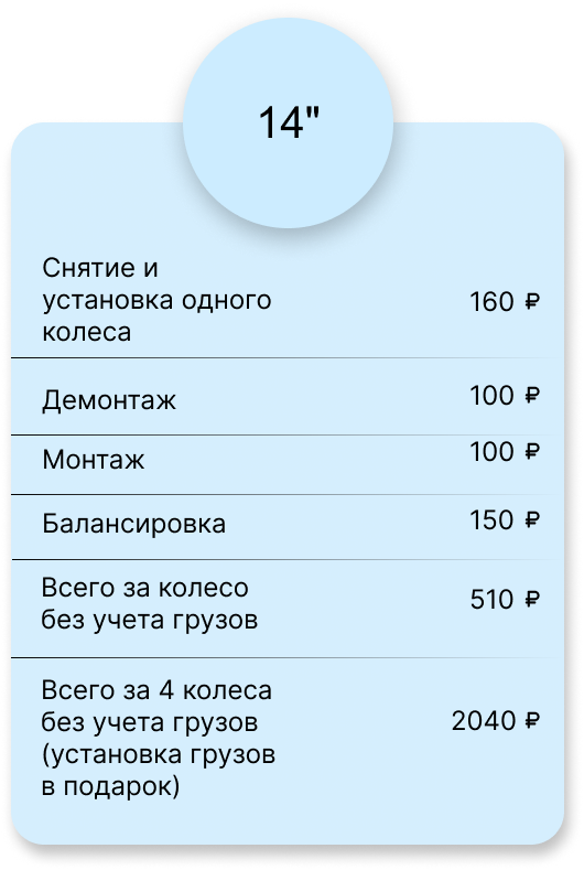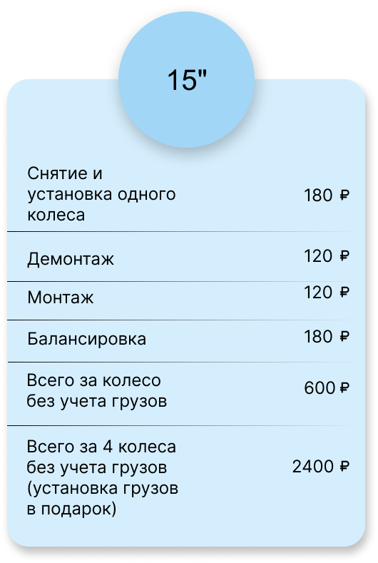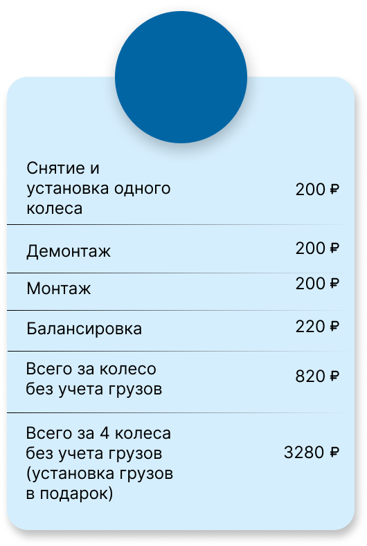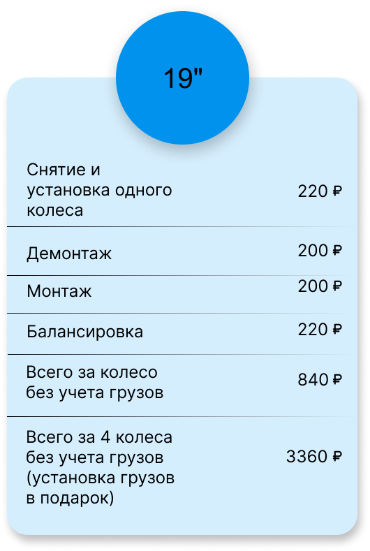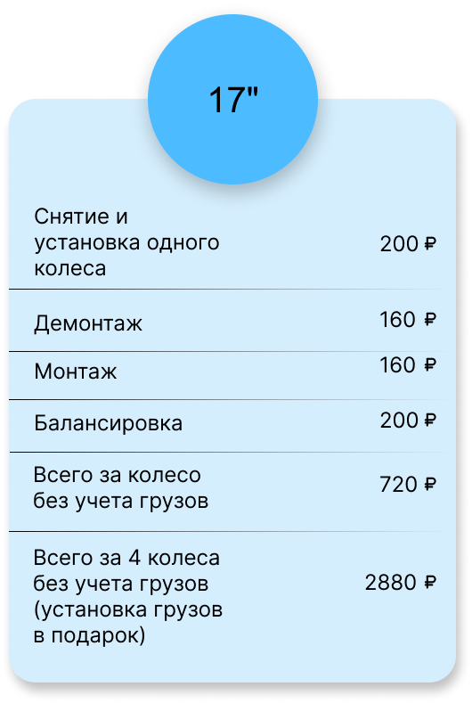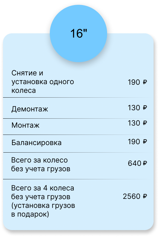 Всего за 4 колеса без учета грузов (установка грузов в подарок)